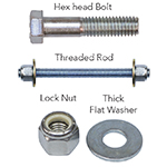 - Accepts 5/8”or 3/4” hex head bolt or threaded rod w/lock nut
