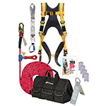 | 4003-L | Deluxe Total Package Fall Protection Kit, Deluxe 30′ 5/8″ diameter 12-Strand Lifeline with Snaphook, Prussic SuperGrab™ Rope Grab, Large Pro-Deluxe™ Harness Hi-Viz, Max-Force™ Ultra-Lite Dee-Loop Loop Energy Absorber with Aluminum Twist Lock Captive Carabiner, Hinge-2™ Reusable Anchor with 36ea 3″ Duplex 16d Nails, and All-Pakka™ Large Heavy Duty All-Pakka™ Cargo Bags Black | 786158400304 | |